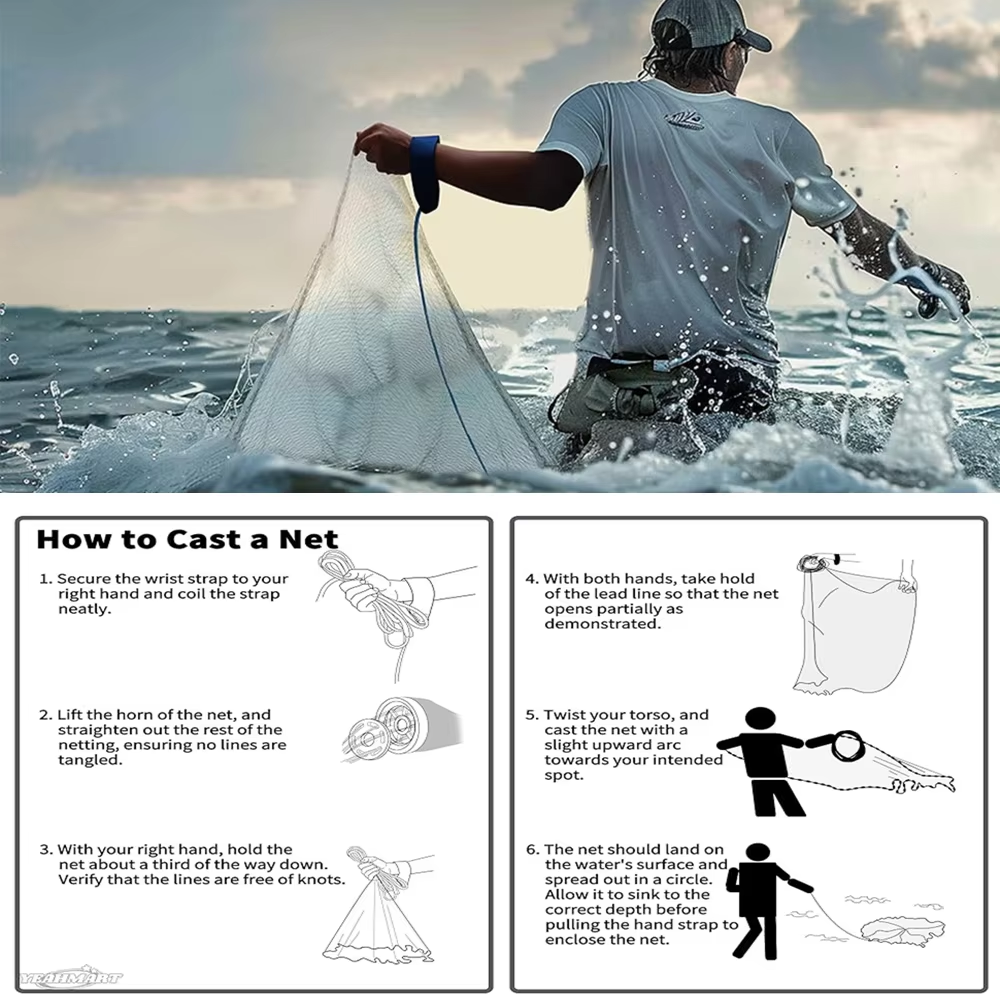 Yeahmart Fishing Cast Net – Versatile Size Options, Long-Lasting Sinkers & Accessories for Optimal Catch!