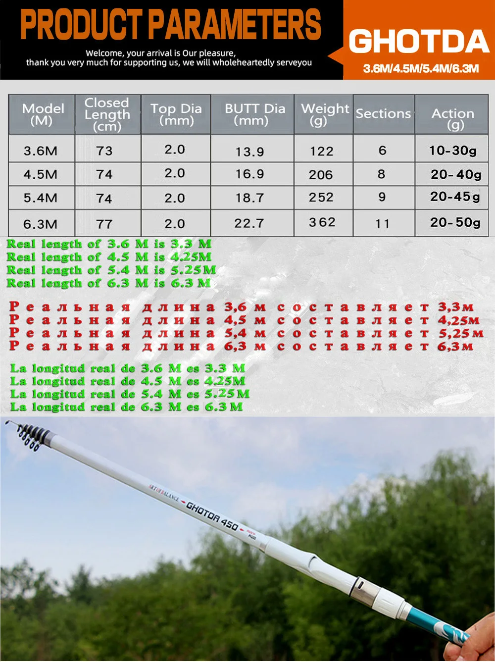 Please pay attention to the real length of the rod.