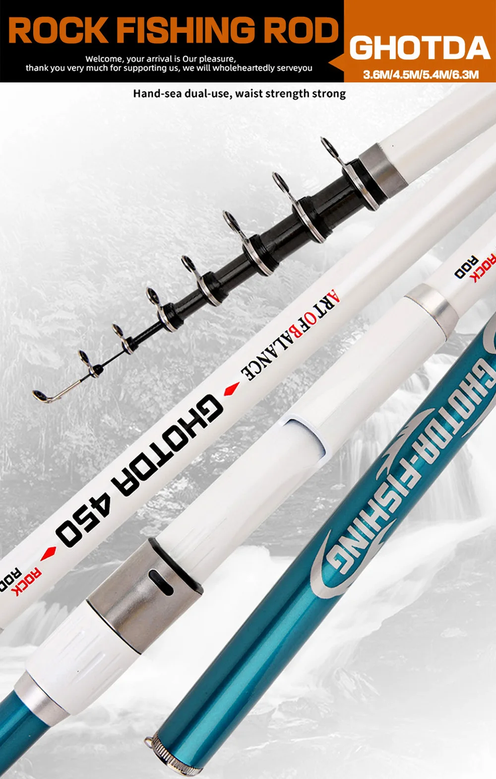 1. Fishing rod is light/hard/strong, which is very convenient for casting and controlling fish.